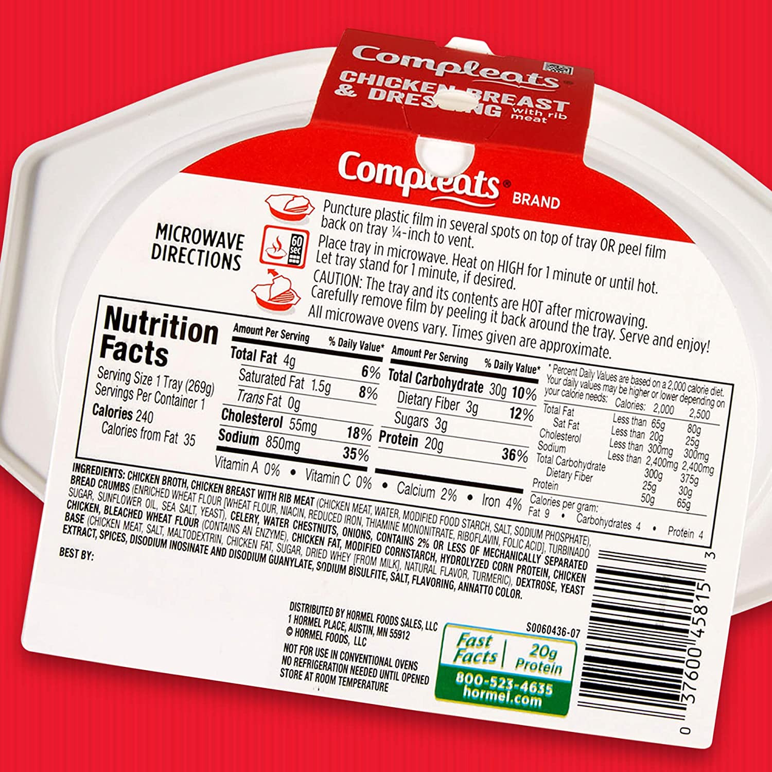 HORMEL COMPLEATS Chicken Breast & Dressing Microwave Tray