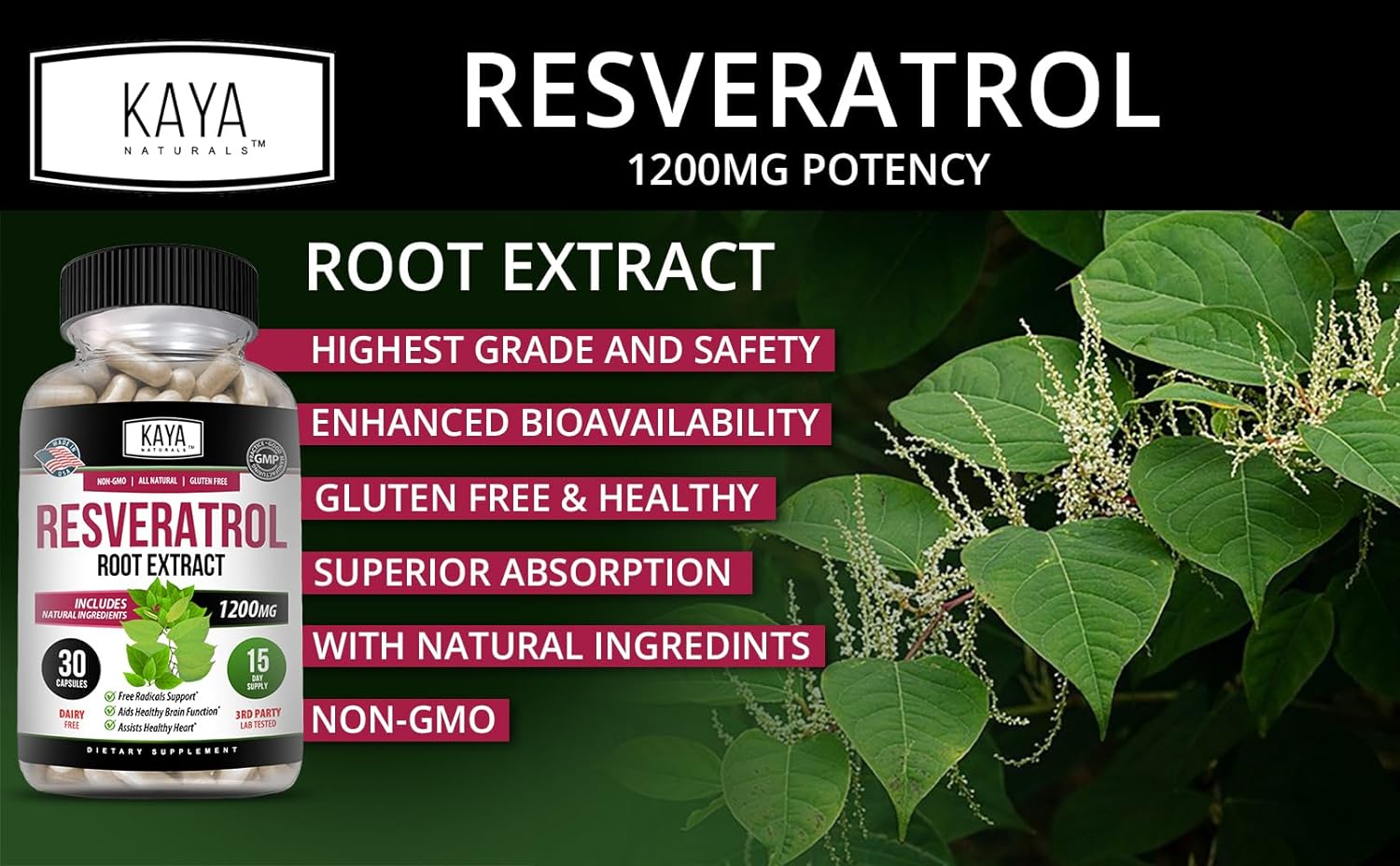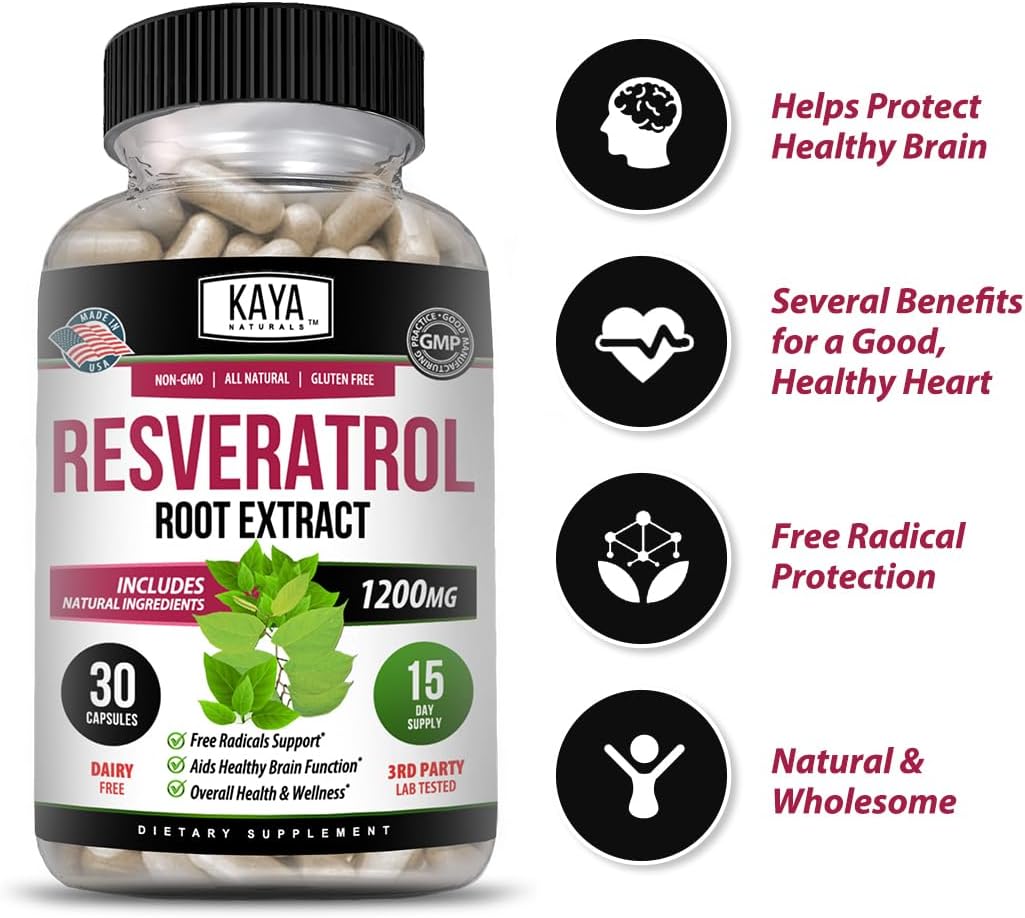 Kaya Naturals – Resveratrol Capsules – Anti Aging Supplement – Antioxidants with Brain Suppor